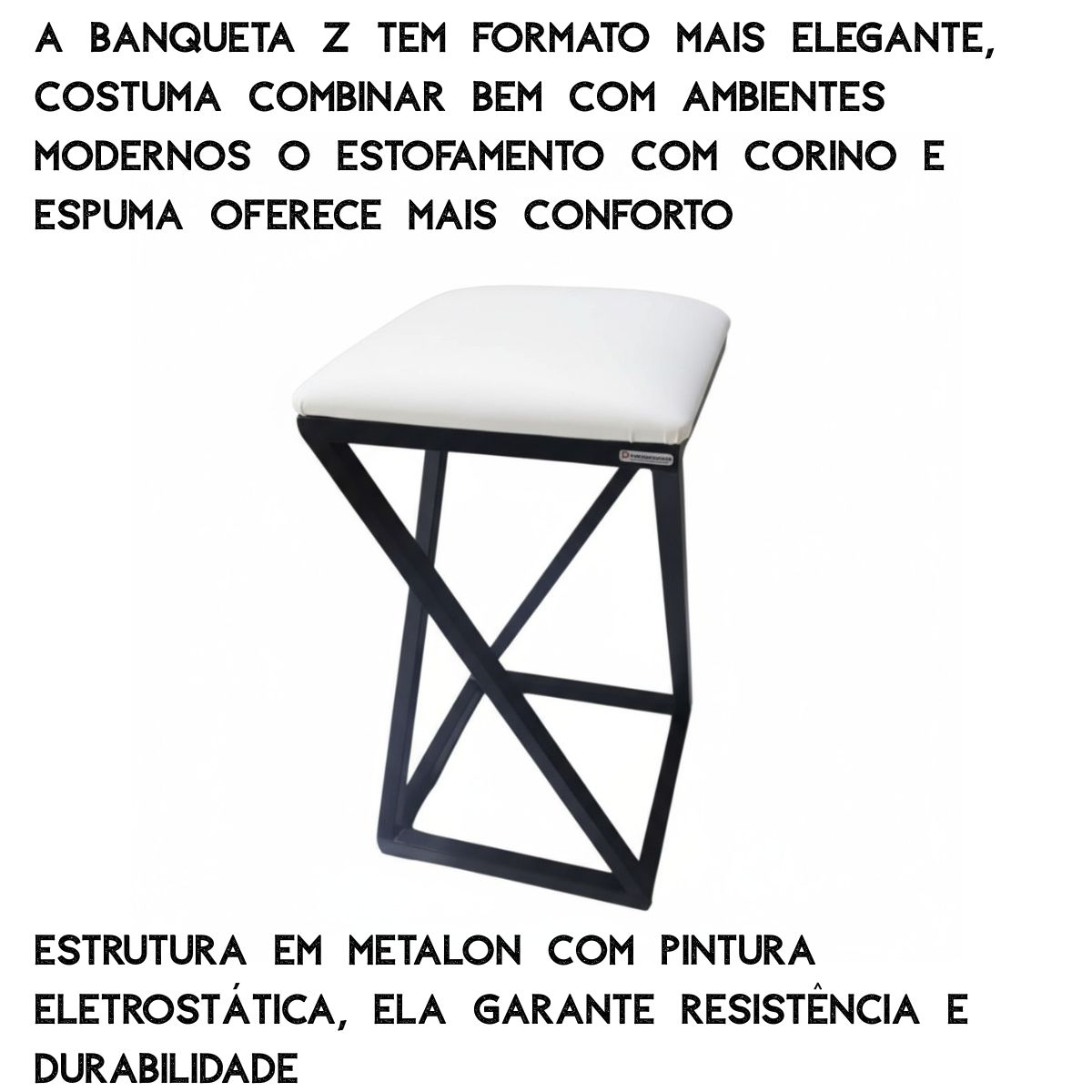 Produzida com corino e estrutura em metalon 20×20 com pintura eletrostática, garante resistência, durabilidade e um visual moderno com pés em formato z.