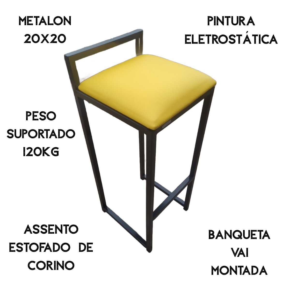A banqueta alta reforçada já vai montada.