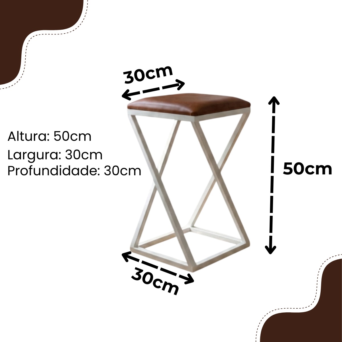 Banqueta Z Baixa 50 cm com Armação de Metal Marrom Lari