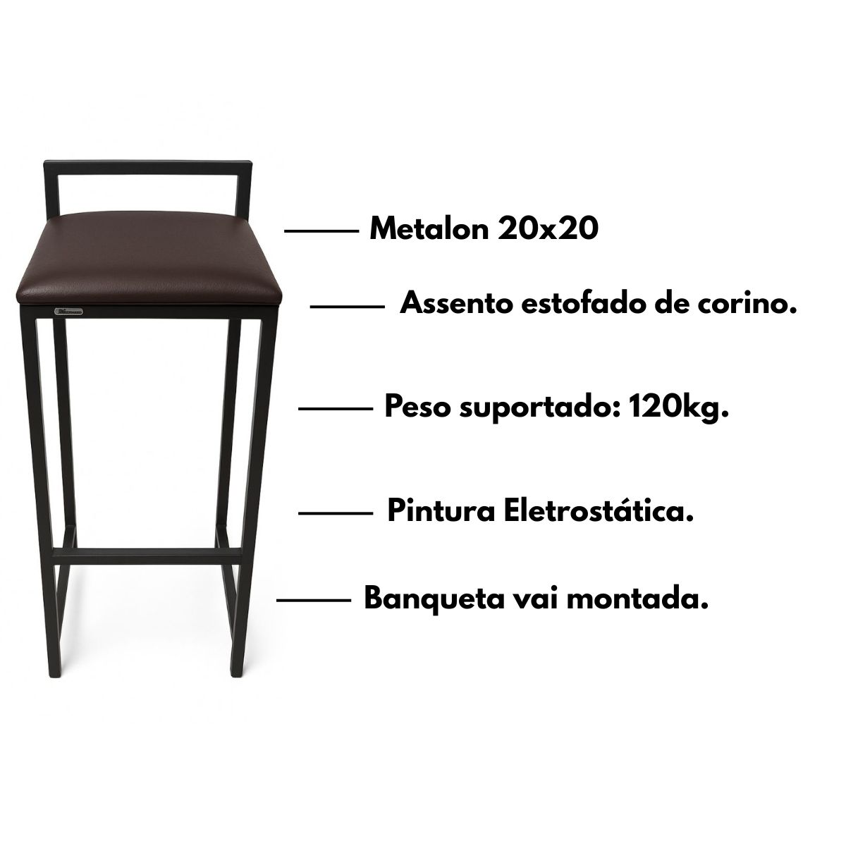 Outro diferencial é a pintura eletrostática, que oferece uma camada protetora contra ferrugem,riscos e desgaste natural, mantendo sua banqueta bonita e elegante por muito mais tempo.